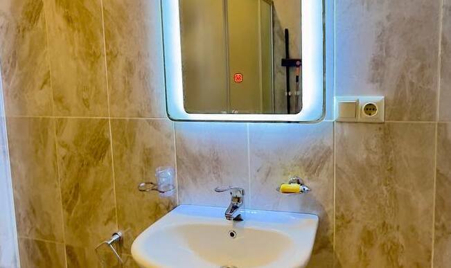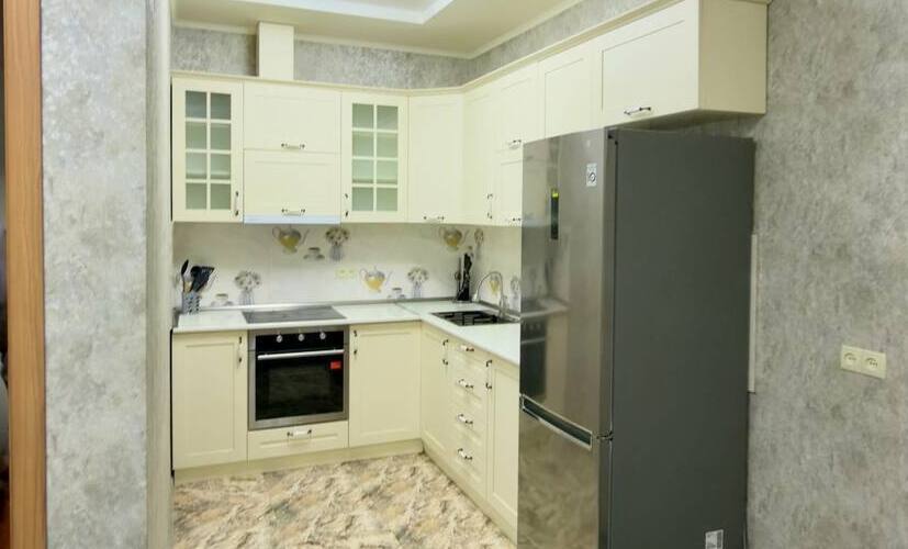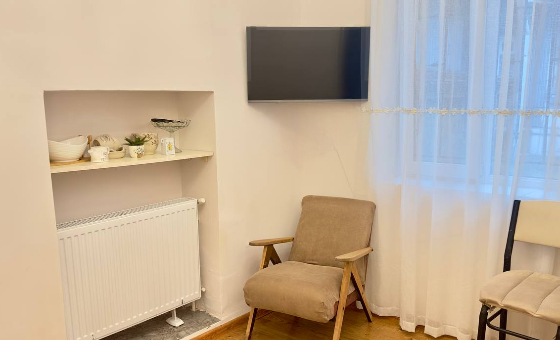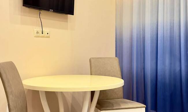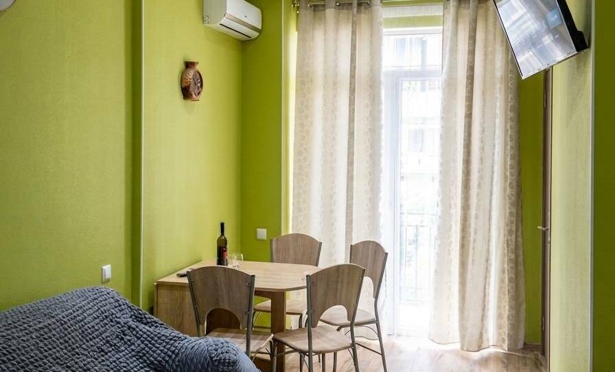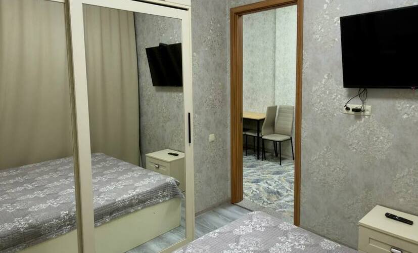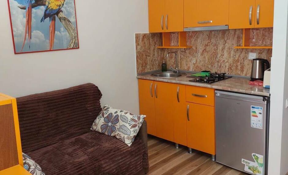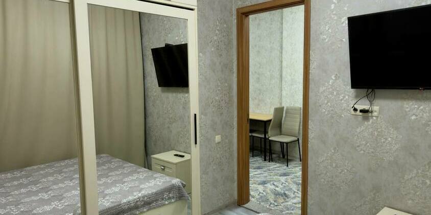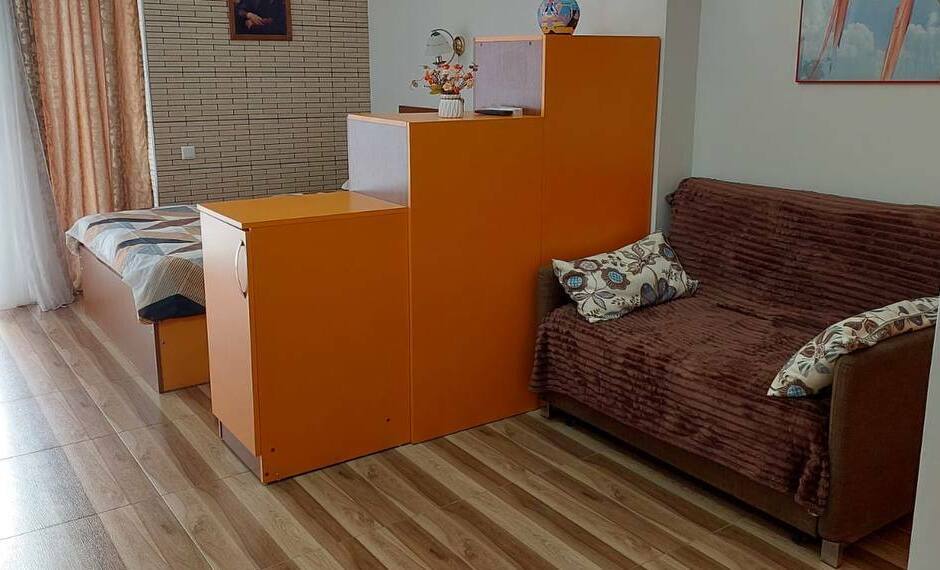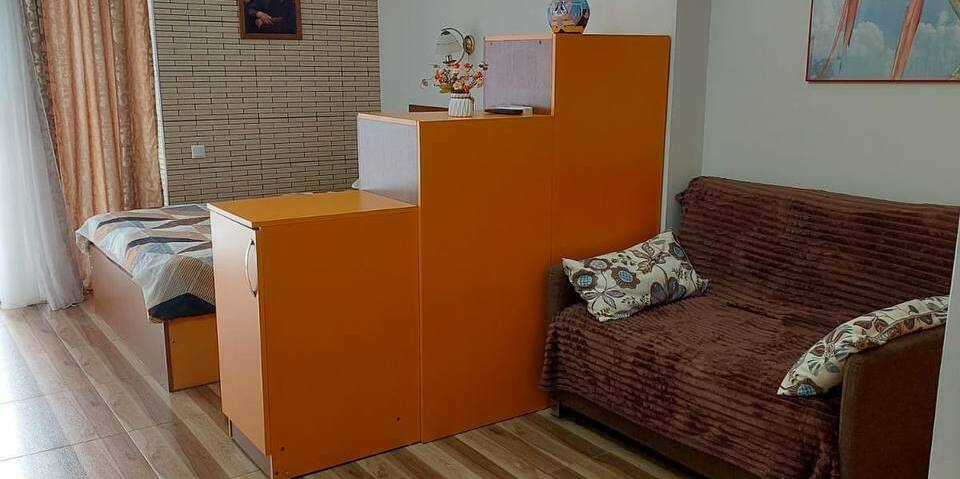 Есть всё необходимое для комфортного проживания: центральное отопление • горячая вода • кондиционер • Wi-Fi • телевизор и большой холодильник.