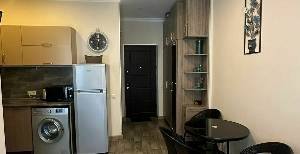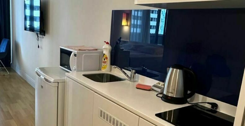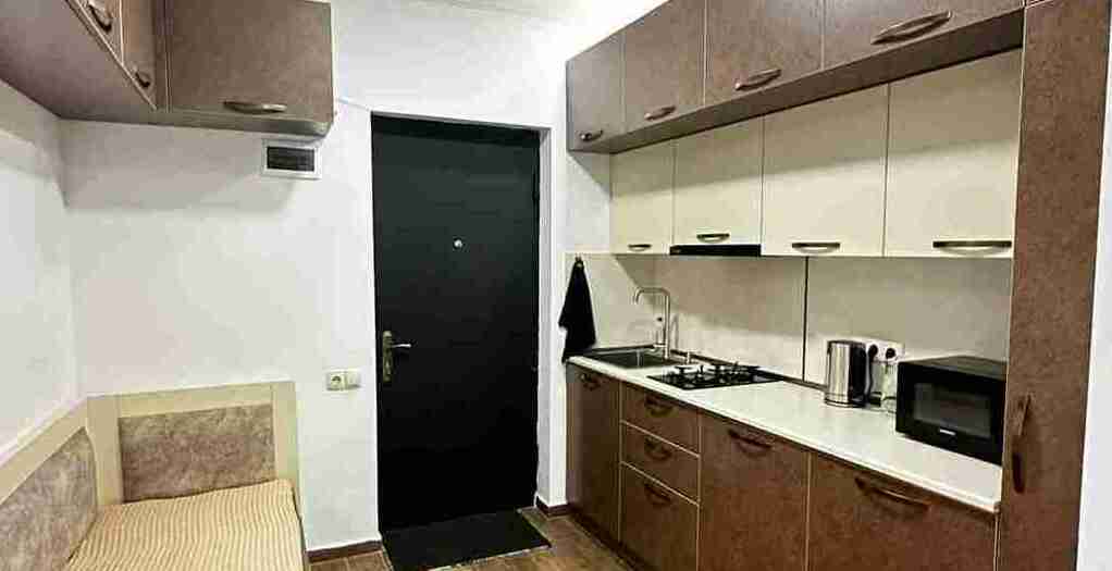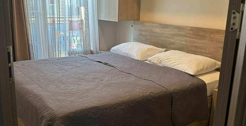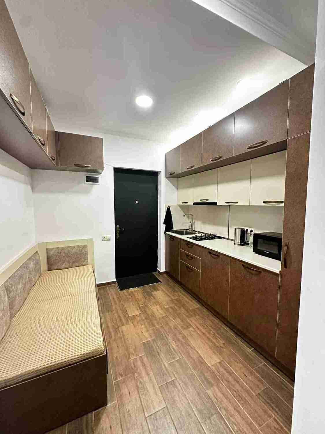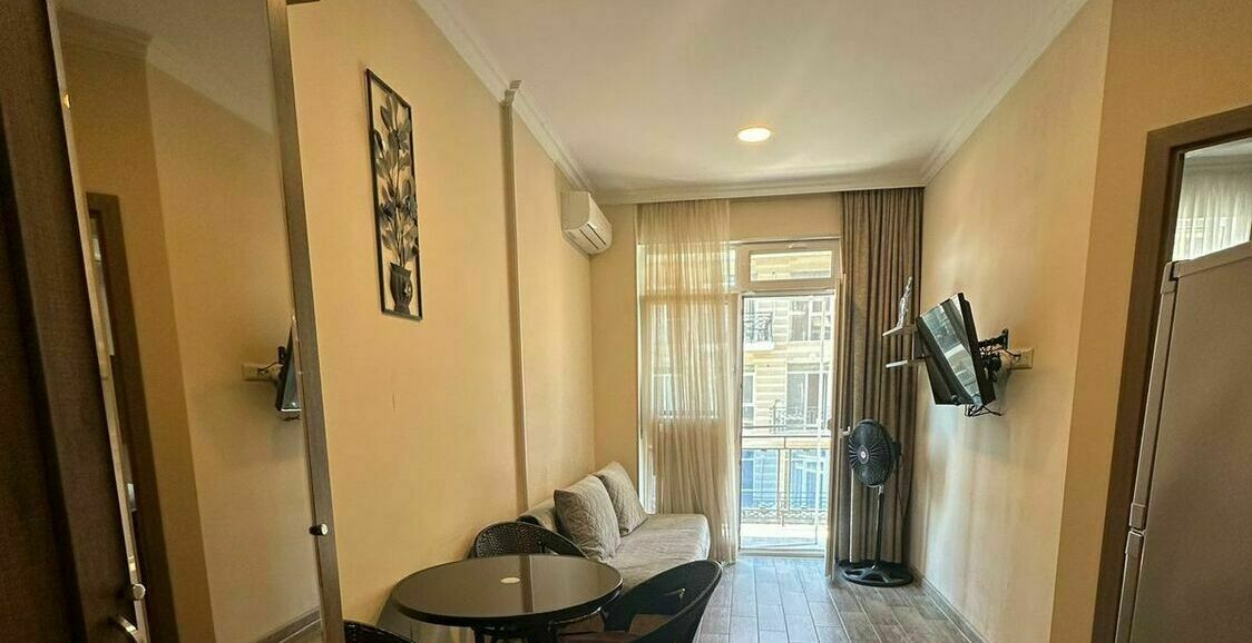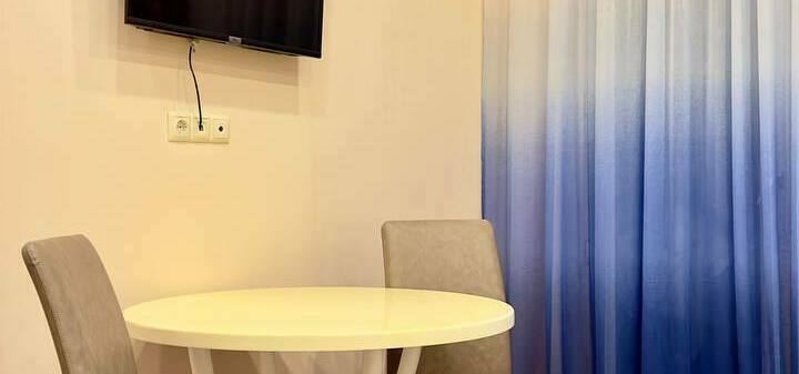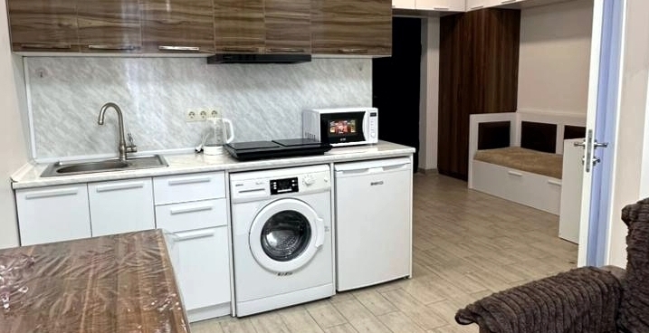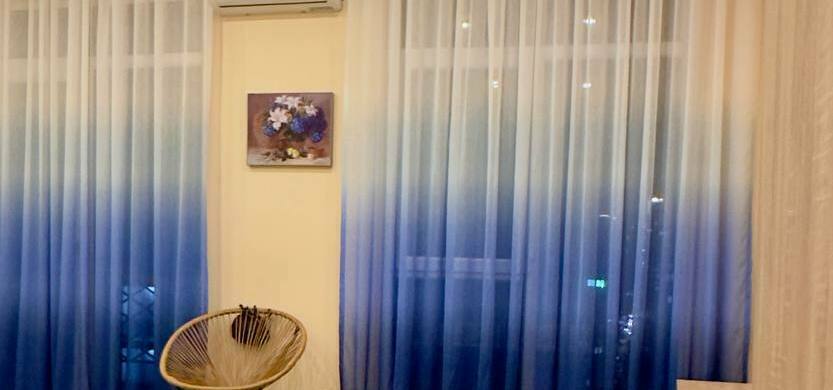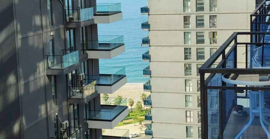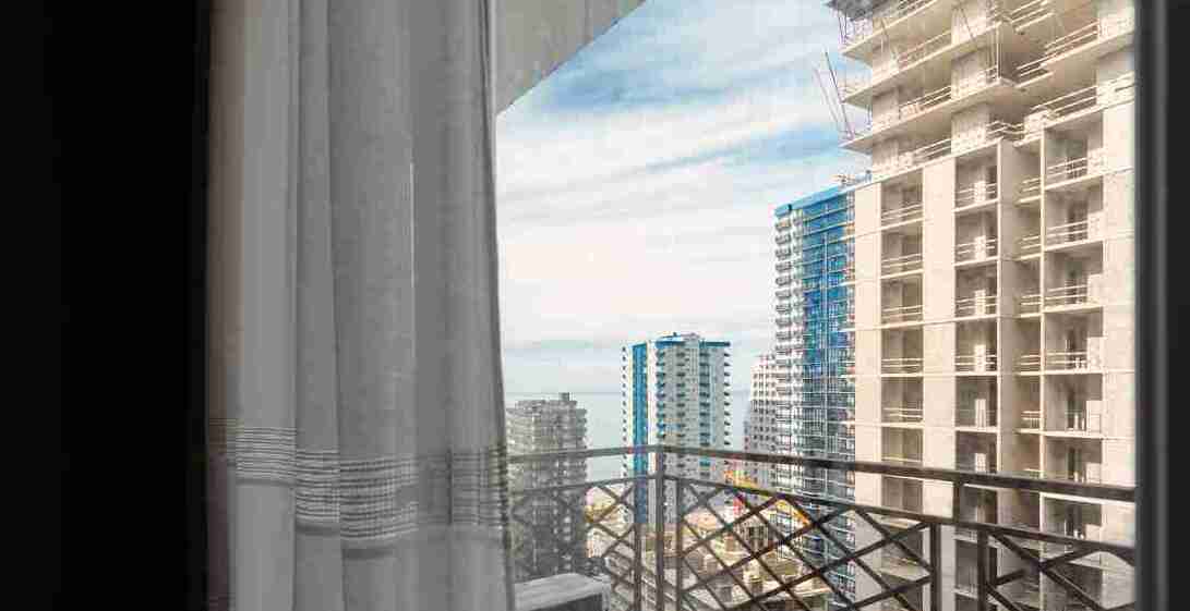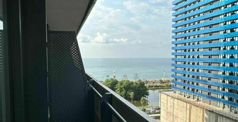 id002 Апартаменты с отдельной спальней (1+1) рядом с ТЦ «Metro City» и морем, на 20-м этаже, с панорамными окнами, видом на море и горы. В распоряжении гостей - кондиционер, центральное отопление, Wi-Fi, телевизор, горячая вода. Уютная спальня с двуспальной кроватью, гостиная-студия с диваном-кроватью и топчано