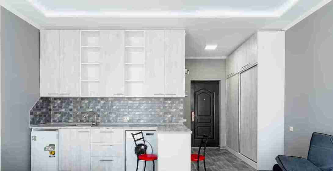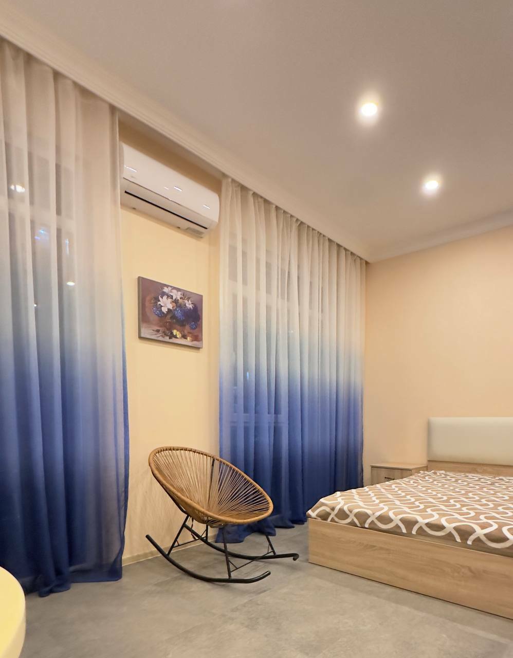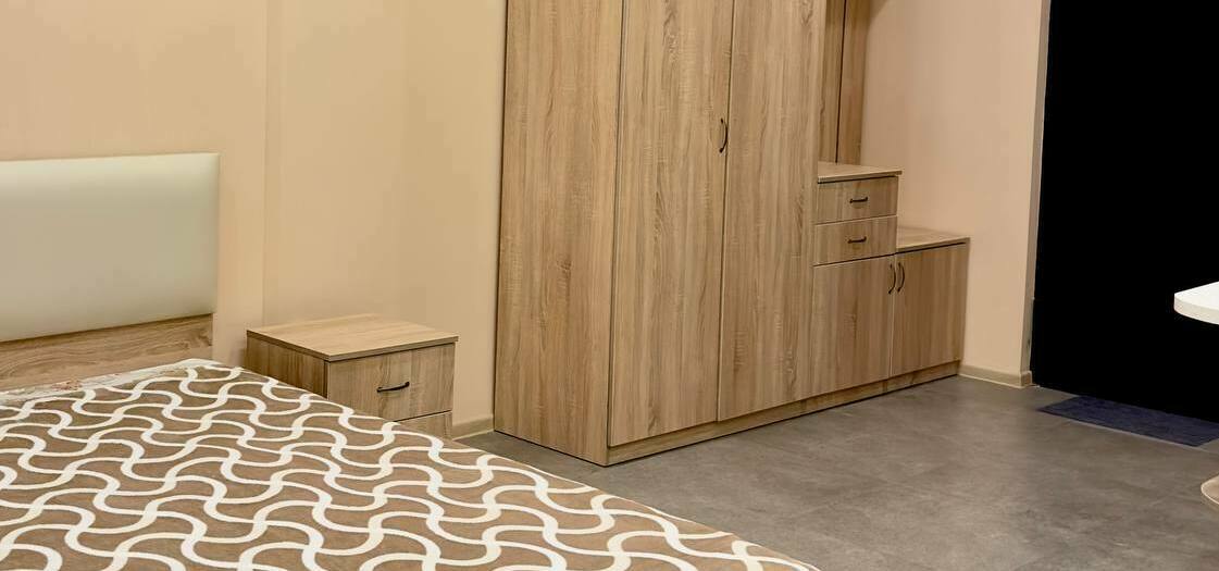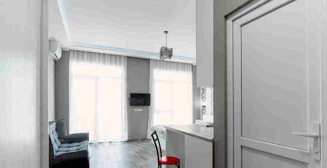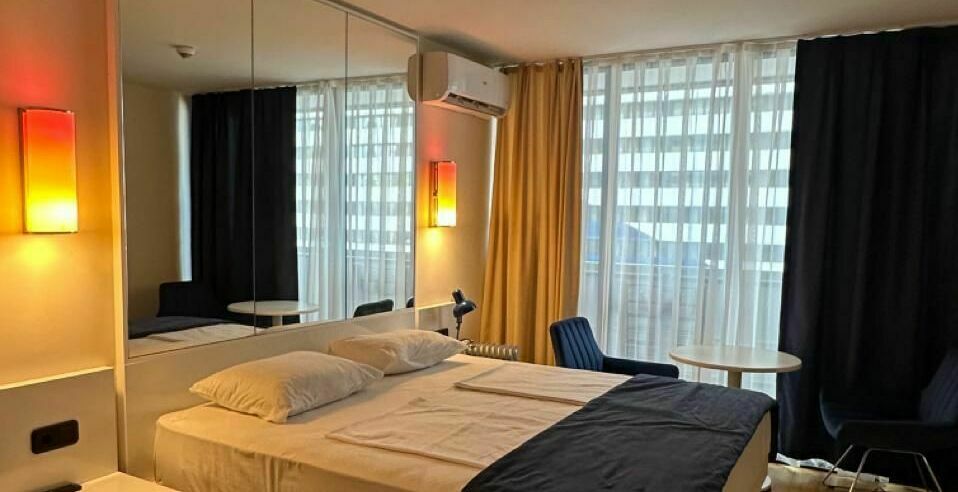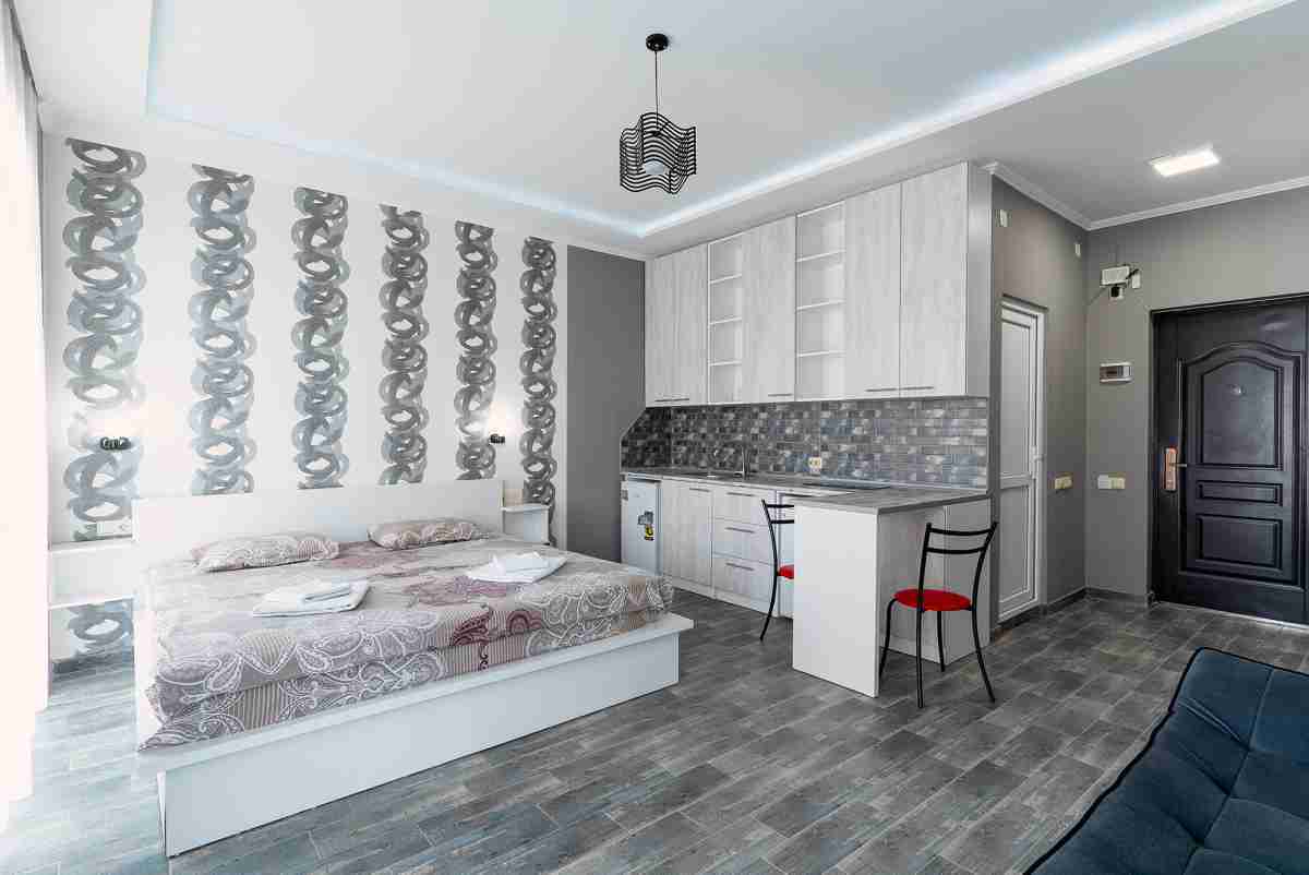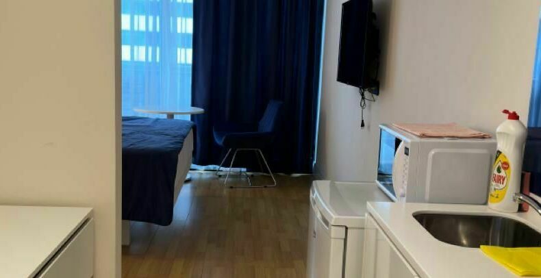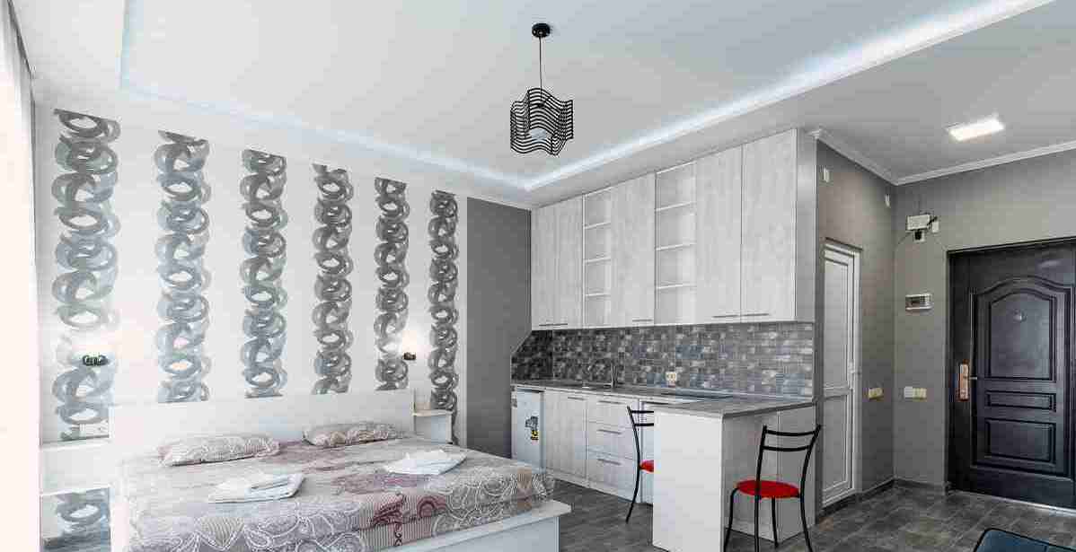 id002 Апартаменты с отдельной спальней (1+1) рядом с ТЦ «Metro City» и морем, на 20-м этаже, с панорамными окнами, видом на море и горы. В распоряжении гостей - кондиционер, центральное отопление, Wi-Fi, телевизор, горячая вода. Уютная спальня с двуспальной кроватью, гостиная-студия с диваном-кроватью и топчано